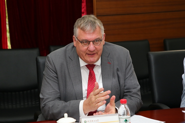 張軍代表學校對Frank Behrendt教授受聘為北京理工大學顧問教授表示祝賀并對他長期以來對學校的支持表示感謝。他指出,近年來中德兩國在人文交流、科學研究等方面廣泛、深入地開展合作。北理工是中國共產黨創辦的第一所理工科大學,目前正處于世界一流大學建設的重要階段,希望Frank Behrendt教授的加盟可以實現北京理工大學與柏林理工大學強強聯合,科學研究再創新成果,學術水平再上新臺階,兩校關系再得新跨越!