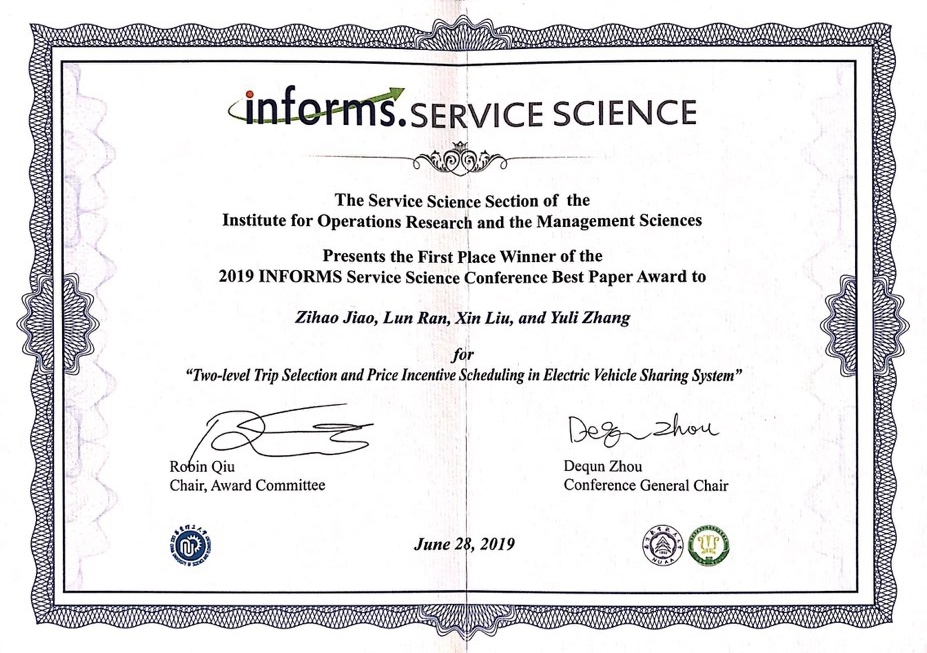 在6月27日至29日舉行的INFORMS(國際運籌學與管理科學學會)服務科學國際會議(以下簡稱ICSS 2019)上,北理工管理與經濟學院2016級博士生焦子豪進入最佳學生論文獎決賽,最終榮獲第一名。