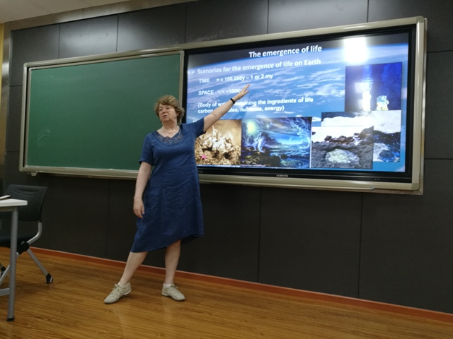 法國著名天體生物學家Frances Westall教授為大家講授了空間生物學的有關知識。她從地質學角度看生命的起源,討論了地球的起源和早期地球在哈迪安時代作為生命起源的背景的地質背景,介紹了地球和火星上早期生命的化石痕跡。