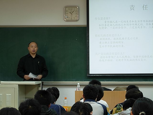 10月17日,我校保密處處長張振華老師作為主講嘉賓展開了第一講。授課過程中,張振華老師結合社會的發展和自身的閱歷為同學們深入淺出地介紹了作為一名當代大學生所應肩負的家庭、社會責任及歷史使命。同時為同學們指明了當面臨選擇時應采取怎樣的態度去做出抉擇,以利于自我更好的發展,實現自身價值。張振華老師曾經多年從事學生工作,有著豐富的教育經驗積累,通過一個個曾經發生在他身邊的鮮活實例,樸實的言語流露出了其對我們當代大學生的期望和對“責任、使命、選擇、發展”的切身感受與深刻理解。張振華老師對黨的路線政策的獨到見解與旁征博引,讓同學們在擴寬視野的同時深受鼓舞,提高了思想境界,進一步端正了入黨動機,加強了同學們的黨員意識。課堂最后,張振華老師帶同學們回顧了建國六十周年以來的一些經典的紅色歌曲。這些歌曲激勵了一代代的有志青年,號召了無數的中華兒女共講愛國,為祖國的繁榮與富強而前赴后繼,揮灑青春。而當代大學生應該以怎樣的精神風貌,唱響當代的主旋律去迎接未來,張振華老師對同學們提出了殷切希望,引導同學們對大學、對人生進行深入的思考。