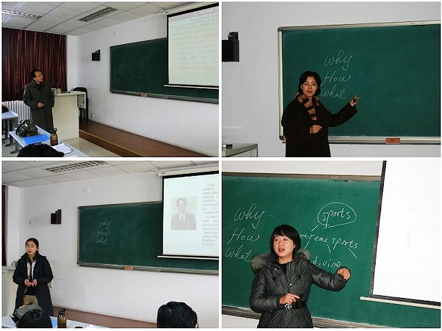 為迎接北京市高等教育學會研究生英語教學研究分會第一屆青年教師教學基本功比賽,也為了以優良的成績迎接即將到來的研究生教育優秀工程評估,北京理工大學外國語學院研究生英語教研室組織全體青年教師開展教學基本功比賽,比賽于2009年11月10中午開始,所有參賽教師都充分展示了自己的創意,在講臺上盡情展現各自的講課風采。