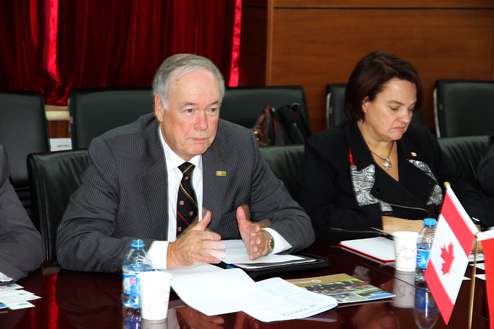 參加此次會見的對方代表還有:拉瓦爾大學主管學術(shù)和國際事務(wù)的副校長Nicole Lacasse,常務(wù)副校長Eric Bauce,國際處處長 Richard Poulin, 人文學院院長Michel de Waele, 自然科學和工程學院副院長 Rene Therrien, 歷史系教授李晟文,和國際事務(wù)顧問徐洪教授;我校參會人員還有材料學院書記陳鵬萬,光電學院院長薛唯,光電學院副院長趙長明,人文學院副院長賈利軍,研究生院培養(yǎng)處副處長張景瑞和國際交流合作處副處長高珊。