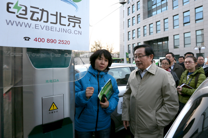 下午16時許,萬鋼副主席一行驅(qū)車來到我校,我校校長胡海巖院士、副校長孫逢春陪同萬鋼一行參觀調(diào)研了我校新能源汽車租賃站情況。萬鋼副主席肯定了我校在新能源汽車研發(fā)、電動車租賃業(yè)務(wù)方面所做的工作。在調(diào)研中,萬鋼副主席看到大部分停在充電樁前整齊停放的電動汽車時,頗為關(guān)注地詢問目前電動汽車的出租率,當(dāng)聽北京市科委主任閆傲霜介紹說目前大部分車輛主要采用長租形式,這批車輛的主要用戶是北京理工大學(xué)的教師,車輛主要是上下班代步使用,所以白天多數(shù)停在充電樁前補電時,萬鋼副主席指出要利用北理工在校師生這股年輕群體的探索精神,配合純電動車這種新穎、新奇的事物,產(chǎn)生更好的推廣效果。