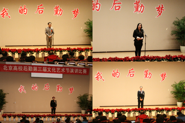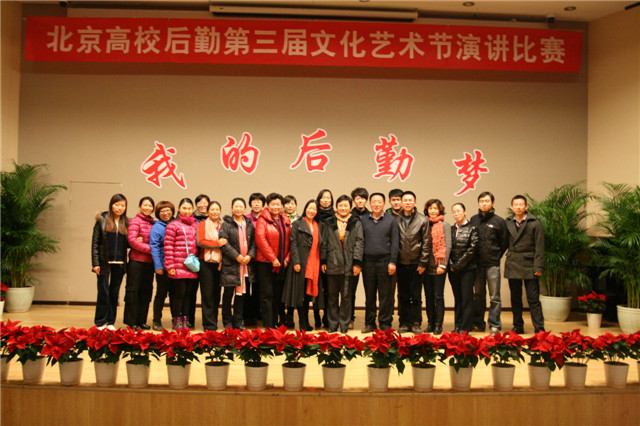 為加強北京市高校后勤思想文化建設,創建和諧后勤團隊,展現后勤人對后勤服務工作的不懈追求和無私奉獻精神。2013年11月27日下午,由北京市教委學校后勤處、高校后勤研究會思政專委會主辦,我校后勤集團承辦的“我的后勤夢”北京高校后勤第三屆文化藝術節演講比賽在中關村校區七號樓報告廳舉行。