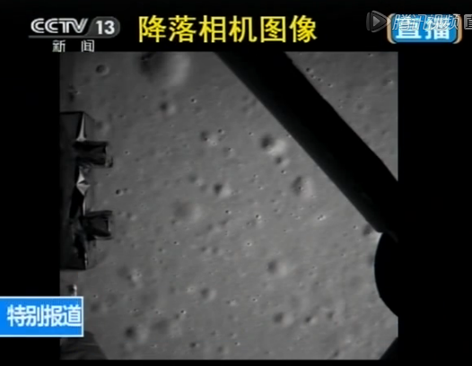 在北京航天飛行控制中心的控制下,約21時(shí),嫦娥三號(hào)從距月面15千米處開始下降,在距月面100米處開啟反推力火箭懸停空中。之后,探測(cè)器自主掃描月面壁障,并于21時(shí)12分許著陸。