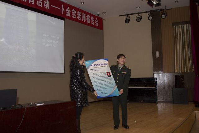 報(bào)告會(huì)結(jié)束后,校團(tuán)委副書(shū)記方蕾老師為卜金寶老師贈(zèng)送了紀(jì)念海報(bào)。