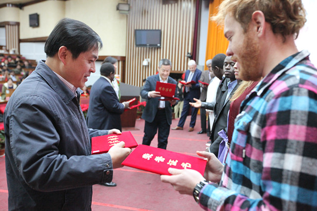 優秀留學生表彰會由留學生中心汪瀅主任主持。胡海巖校長發表了重要講話。他首先解讀了“中國夢”的內涵,指出中國夢不僅是全體中國人的夢想,也包含了在中國學習和生活的所有外國友人的夢想。在談到學校的發展時,胡海巖說,將我校建設成為國際一流大學的“北理夢”需要全體教職員工、全體中國學生和全體外國留學生以及校友們的共同努力。在未來的工作中,學校將大力推進國際化進程,進一步改善辦學條件,提高國際化辦學質量以吸引更多的外國留學生,特別是學位生來我校攻讀。他還結合自身早年的留學經歷,勉勵在座的外國留學生積極融入校園生活,希望他們能學有所成,成長為具有國際視野的多元文化人才。