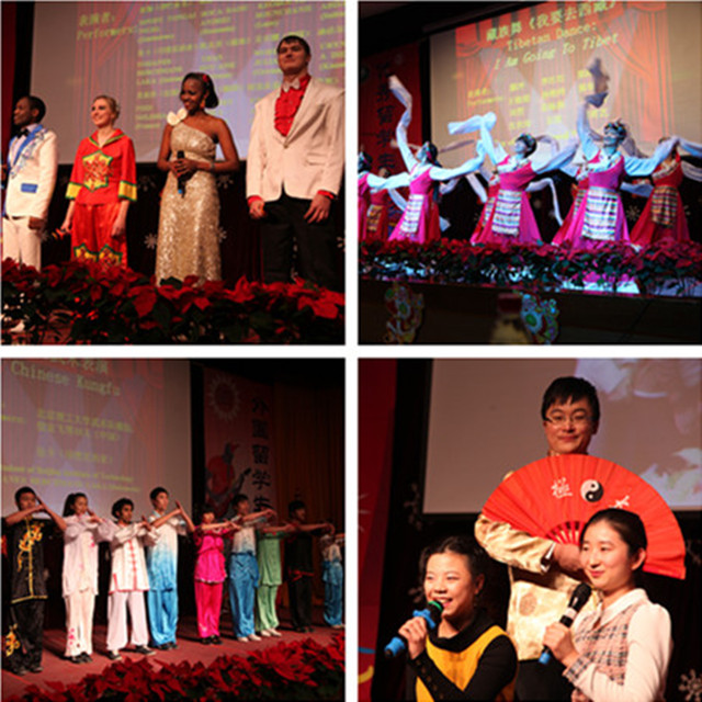 值得一提的是,今年晚會還邀請了我校武術隊和京劇社團,他們的精彩表演讓同學們領略了中國文化的博大精深;此外,留學生中心的老師們集體表演的 《中國話》 和藏族舞蹈更是體現了留學生聯歡會“師生一家人”的主題。
