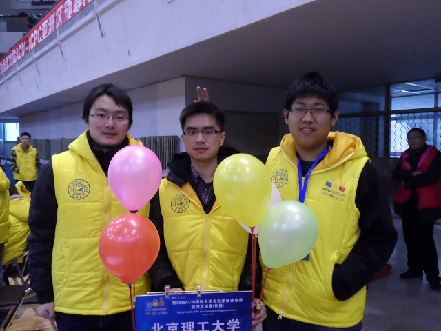 2013年亞洲地區中國大陸國際大學生程序設計競賽(ACM/ICPC)選拔賽設有五個賽區,分別是長春賽區,南京賽區,成都賽區,長沙賽區和杭州賽區。在教務處的領導下,計算機學院負責組織與訓練該項賽事。辛勤耕耘,終有所獲,在2013年亞洲地區賽中刷新了北京理工大學在地區賽上的最好成績。北京理工大學代表隊分別在五個賽區經過激烈的網上預賽獲亞洲現場賽資格,每個賽區各派兩支代表隊參加現場比賽,獲得二金,三銀,一銅的高基點好成績。最終由計算機學院老師林永鋼,學生劉星辰(10級)、易毅(10級)、梁耀波(09級)組成的BIT_laser隊憑借在長沙賽區取得的優異成績,突出重圍,獲得了明年在俄羅斯葉卡捷琳堡舉行的世界總決賽的入場券。這是北理學子的驕傲,更是北京理工大學的驕傲,期待他們在世界總決賽中有出色的表現。