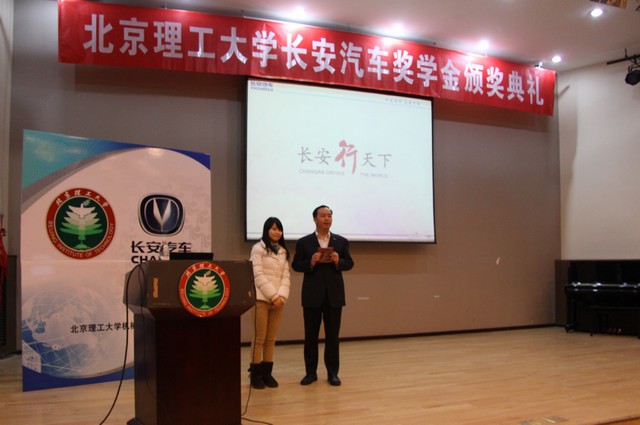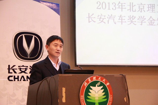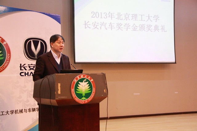 2013年12月19日,北京理工大學2013年長安汽車獎學金頒獎儀式在中關村校區七號樓報告廳順利舉行。長安汽車股份有限公司副總裁任強、汽車工程研究總院總工程師郭九大、北京公司總經理蔣云峰、公司辦公室公共關系及品牌處處長馬學寶、公司辦公室北京辦事處副主任楊嵩等企業來賓,北理工校長助理姚利民、機械與車輛學院院長項昌樂、校研工部部長郝洪濤、校學工部部長郭彥懿、校團委書記藺偉、教育基金會辦公室主任羅雪、機械與車輛學院副書記副院長范文輝以及中國汽車報、教育報等媒體嘉賓參加了本次活動。儀式由機械與車輛學院院長助理兼學工辦主任王泰鵬主持。