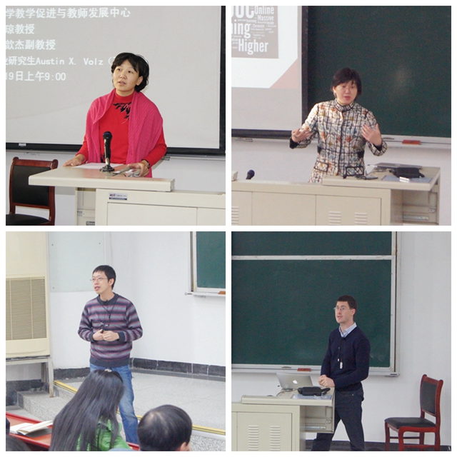 主題報告之前,我校教務(wù)處曹峰梅副處長就我校在MOOCs背景下的教學(xué)模式改革作了簡短的介紹。曹處長在簡要回顧了網(wǎng)絡(luò)課程建設(shè)的歷史后強調(diào),MOOCs的應(yīng)用既是學(xué)校內(nèi)部教學(xué)改革內(nèi)在動力的驅(qū)動,也是高校滿足國家需求、承擔(dān)終身教育社會責(zé)任的需要。我校將大力推動信息化、網(wǎng)絡(luò)化在教學(xué)中的應(yīng)用,教務(wù)處、黨委宣傳部、網(wǎng)絡(luò)中心等部門將聯(lián)手為教學(xué)模式改革提供資金、人員、技術(shù)等全方位的支持,確保教與學(xué)質(zhì)量的提高。