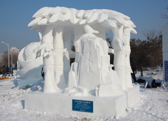 2014年1月7日,2014第六屆國際大學(xué)生雪雕大賽于冰城哈爾濱圓滿落下了帷幕。北京理工大學(xué)雪雕作品《草木知春》榮獲大賽一等獎,創(chuàng)造了歷史最好成績。本次比賽是哈爾濱第30屆冰雪節(jié)重點活動的一項內(nèi)容,共有來自中國、俄羅斯、英國、泰國、朝鮮、馬來西亞、日本、韓國、丹麥、中國香港、臺灣等11個國家和地區(qū)高校的61支代表隊參加。