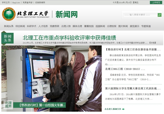 一則有趣的校園新聞背后,不僅整合了宣傳部(新聞中心)在新聞線索挖掘、新聞內容制作和優勢圖文報道能力,還充分發揮了新媒體優良的社會傳播能力,在學校內外形成了熱點關注,用全新的視角和手段,展現北理工形象,傳播北理工文化,這其中起到“樞紐”作用的就是于2013年下半年全新上線的北京理工大學新聞網。