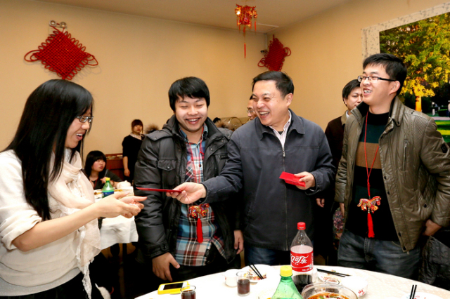 1月28日,校長胡海巖、副書記副校長李和章代表學校領導分別慰問了兩校區寒假留校學生,為留校學生準備了熱騰騰的餃子,還為每名留校學生發放了紅包。胡校長強調我校全體師生、校友是一個大家庭,祝這個大家庭中的每個成員新春愉快,祝同學們在新的一年里學習進步,蒸蒸日上。