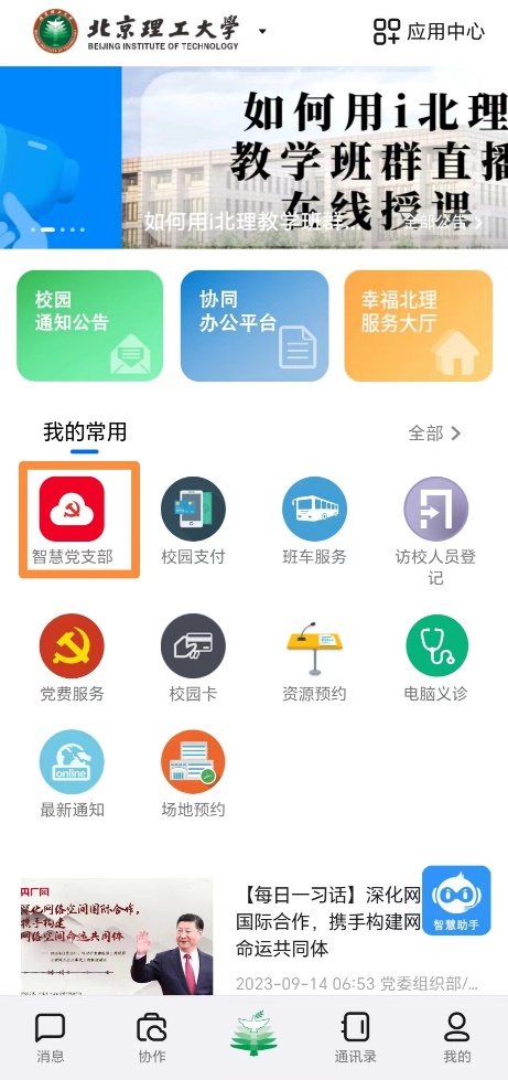 移動端:在i北理“全部應用”中搜索“智慧黨支部”,點擊進入,建議橫屏觀看。