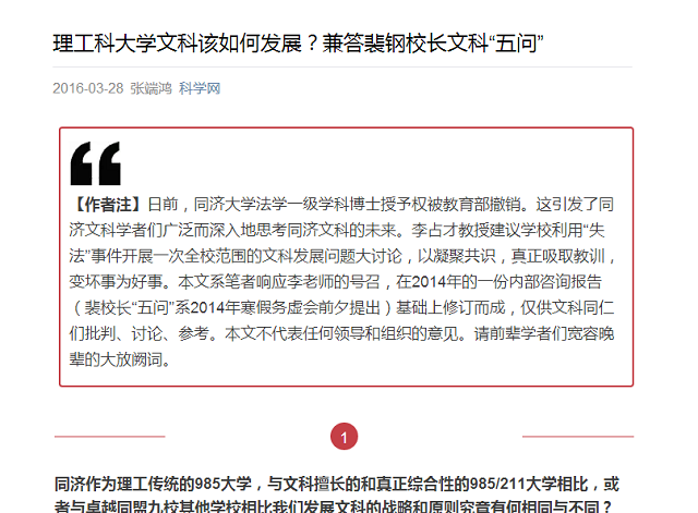 原文標題:理工科大學文科該如何發展?兼答裴鋼校長文科“五問”