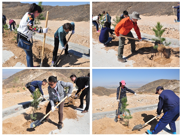 。。學院師生響應習總書記的號召,積極參加此次植樹活動?,F場氣氛熱烈,熱情高漲,師生們相互配合,干勁十足。師生們勞作的身影和路旁漸漸立起的一排排樹苗形成一幅美麗的畫面。共完成油松樹苗種植500余株。