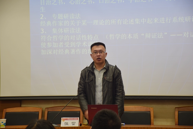 張雷從習近平關于改革發展穩定、內政外交國防、治黨治國治軍的重要思想各個方面,梳理了習近平總書記系列重要講話精神內涵,他指出,要將學習習近平總書記系列重要講話同學習馬克思列寧主義、毛澤東思想、鄧小平理論、“三個代表”重要思想、科學發展觀結合起來,深刻理解黨的科學理論既一脈相承又與時俱進的內在聯系,深入領會貫穿其中的馬克思主義立場觀點方法。同時,他以《做合格共產黨員,為黨的生日獻禮》一文為例,詳述了理論文章的寫作方法,在座的同學們獲益匪淺。本次培訓還安排了本學期校院兩級理論社團開展學習習近平總書記系列重要講話精神活動的相關工作,為參會同學發放《習近平談治國理政》《習近平講話重要內容集錦》等學習資料。