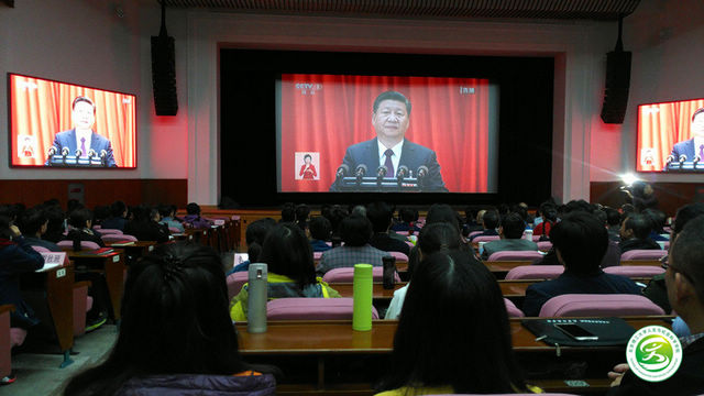 黨的十九大是我們黨在全面建成小康社會(huì)決勝階段、中國特色社會(huì)主義關(guān)鍵時(shí)期召開的一次非常重要的大會(huì),是全黨全軍全國各族人民政治生活中的大事。在觀看直播現(xiàn)場,廣大師生邊看邊做好記錄,不時(shí)以熱烈的掌聲回應(yīng)習(xí)近平總書記的精彩報(bào)告。