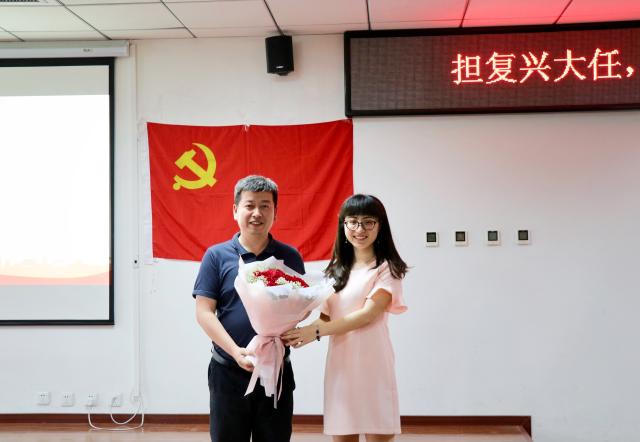 2014級本科第六黨支部書記吳佳奕、第四黨支部書記牛建林、第二黨支部書記黃建開分別向2016級輔導員、本科良鄉黨支部書記、學生會指導教師李智,低年級黨支部書記代表趙人、共產主義學習實踐會主席宋汨贈送畢業班黨員們精心整理的大學四年的黨建和學習資料,共計900M,存放于帶有學院logo的定制U盤內。