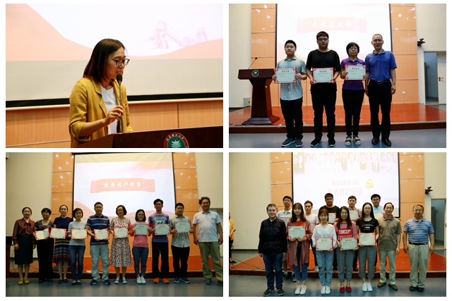 大會在莊嚴的國際歌中拉開帷幕。張楊代表學院黨委宣讀了《數學與統計學院黨委“七一”表彰決定》。計算與系統科學系黨支部、2015級本科生黨支部、2016級學碩黨支部3個黨支部獲得“先進黨支部”榮譽稱號;孫婧、鐘漫如等5名教師,杜昺璇、魏曉敏等17名學生獲得“優秀共產黨員”榮譽稱號。學院黨委委員為獲獎集體及個人頒獎。