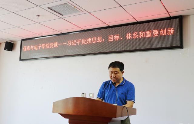 編輯:曹安琪 審核:薛正輝 閱讀次數:為深入學習貫徹習近平新時代中國特色社會主義思想和黨的十九大精神,在中國共產黨成立97年紀念日到來之際,信息與電子學院于6月21日下午邀請中央黨史和文獻研究院當代馬克思主義研究部黨建研究處處長、研究員朱昔群,講授《習近平黨建思想:目標、體系和重要創新》為題的專題黨課。本次黨課由學院黨委書記薛正輝主持,學院全體教工黨員和學生黨員代表參加。