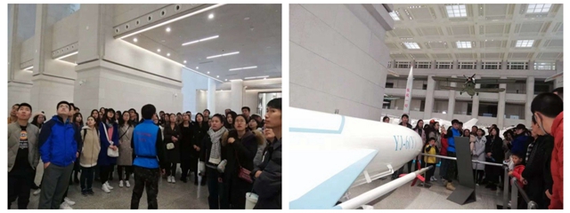 進入一樓展廳,各式殲擊機、轟炸機、導彈的模型或實物便映入眼簾。志愿者深入淺出的講解讓支部成員了解到,展廳中陳列的許多兵器都曾經創造過人民解放軍兵器史上的第一;亦有許多武器是在人民軍隊的歷次戰斗中立過戰功的功勛武器,如空軍戰斗英雄王海駕駛過的曾經在朝鮮戰場擊落擊傷美國空軍9架戰斗機的米格-15殲擊機。隨著參觀的不斷深入,支部成員逐漸了解了美式飛機與蘇式飛機的區別;了解了中國空軍從無到有的歷史;了解了先輩們為了建設新中國而付出的艱苦卓絕的努力。
