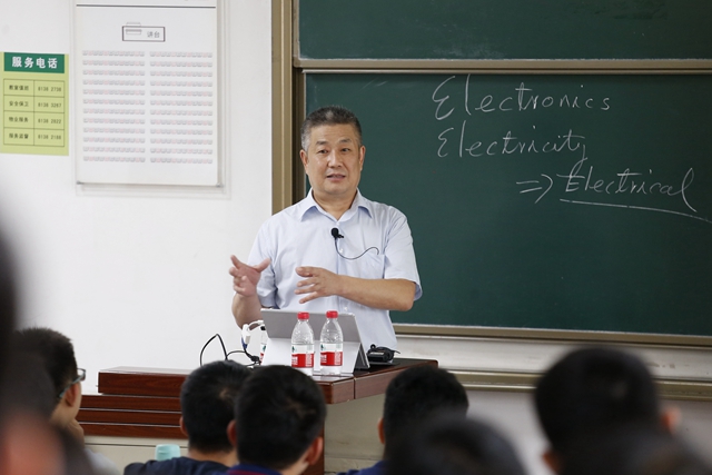 趙長祿首先闡釋了黨的十九大的意義,向同學們細致解讀了習近平新時代中國特色社會主義思想的豐富內涵和基本方略,深化了學生對黨的認識,堅定了學生聽黨話、跟黨走的決心。講到科技創新,趙長祿強調科技創新是提高社會生產力和綜合國力的戰略支撐,也是大國崛起的基石,對經濟增長貢獻巨大。他結合自己的工作經歷,希望同學們將學習知識、推動科技進步與經濟社會發展、與提升國防實力、綜合國力密切聯系起來。結合中美貿易戰,趙長祿激勵同學們清醒認識當今責任和使命,發揮專業優勢,鉆研核心技術,為推動我國制造業高質量發展、破解被人“卡脖子”境遇揮灑青春。講到學校在人才培養方面取得的顯著成績,趙長祿列舉了北理工代表隊在第四屆中國“互聯網+”大學生創新創業大賽中獲冠軍、季軍和金獎,在2019年人工智能國際挑戰賽中獲總冠軍等突出事例,引發了同學們陣陣掌聲,堅定了同學們立足北理工、奮斗新時代的自信。
