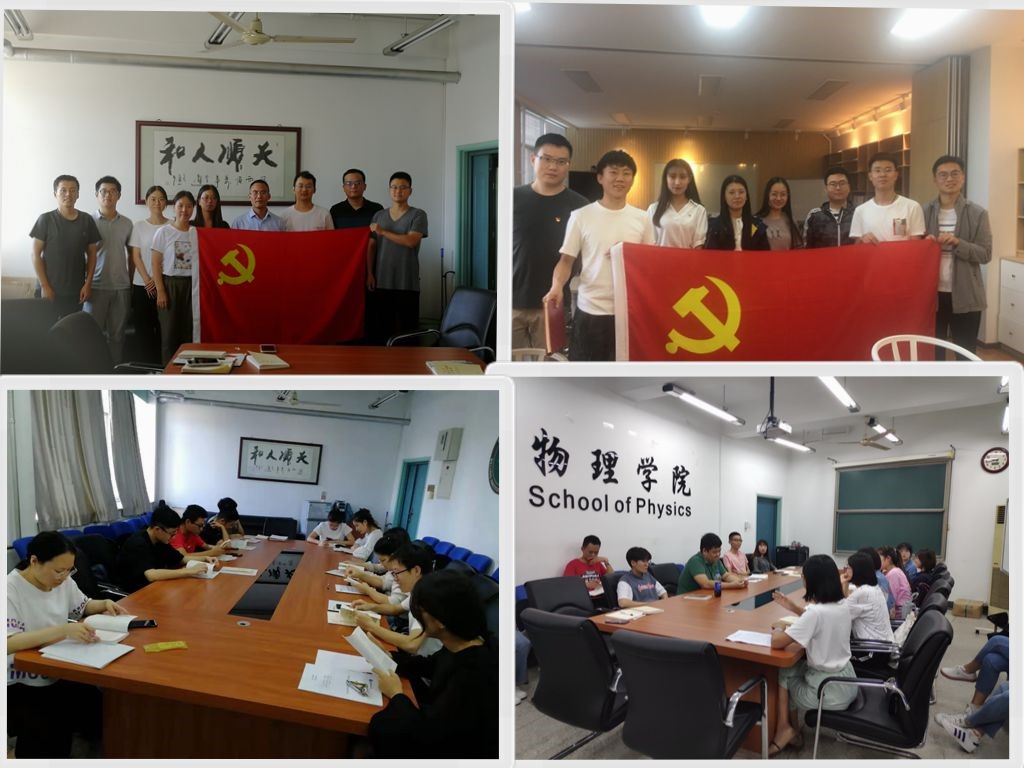 15級博士黨支部在黨課活動上觀看開國大典彩色版,重溫這雄壯的一幕,重溫了黨的初心和使命。這也是對黨員內(nèi)心的一次洗禮和教育,燃起同志們心中的滿腔熱血; 17級碩士黨支部的同志們一起學習了習近平總書記視察北京香山革命紀念地重要講話。當代青年黨員是傳承紅色基因,發(fā)揚革命傳統(tǒng)的領(lǐng)頭羊,增強了同志們干事創(chuàng)業(yè)的擔當和自覺; 18級碩士黨支部主要學習了《習近平關(guān)于“不忘初心、牢記使命”論述摘編》,會上大家熱烈討論了中國夢,實現(xiàn)民族偉大復興,就是中華民族近代以來最偉大的夢想,作為青年黨員的我們必須努力奮斗! 19級碩士黨支部作為物理學院黨委的新生力量,深刻學習了習近平總書記關(guān)于“不忘初心,牢記使命”的重要論述,同志們熱血沸騰,深深體會到中國共產(chǎn)黨的偉大,中國共產(chǎn)黨的使命就是為中華人民謀幸福,為中華民族謀復興,要堅決做好新時代的青年黨員。 本科生黨支部就習近平總書記關(guān)于“不忘初心,牢記使命”主題教育活動的重要講話進行了認真學習,黨員們互相交流,發(fā)現(xiàn)不足,查擺問題,明確了新學期支部建設(shè)工作要點。