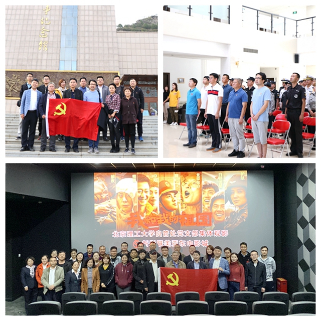 10月1日,組織黨員和部分服務保障單位同志收看慶祝新中國成立70周年盛典直播,激發黨員們高度的政治自覺、強烈的責任擔當、真摯的榮校情懷、無私的奉獻精神;10月11日,組織參觀“偉大歷程 輝煌成就——慶祝中華人民共和國成立70周年大型成就展”,通過體會中國共產黨領導中國人民發憤圖強、艱苦奮斗實現的偉大跨越,使黨員們切實加強思想教育和激勵,增強踐行初心使命的意識和動力;10月15日,組織黨員和服務保障單位同志集體觀看了國慶獻禮影片《我和我的祖國》,在觀影過程中,開國大典上的難忘時刻引起了黨員們的共鳴,每一個看似一個不起眼的小零件都是不可忽視的環節,與良鄉校區服務保障工作何其相似,兩支部黨員們正是用自己的實際行動詮釋了使命和擔當;10月22日,組織黨員同志前往愛國主義教育基地——房山區平西抗日戰爭紀念館參觀,使黨員同志們從心靈深處接受了一次生動的愛國主義教育,在思想政治上接受了一次深刻洗禮,體會到了抗日戰爭英勇斗爭的偉大精神和眾志成城、前赴后繼的革命英雄氣概,明確了在抗日戰爭時期革命先烈初心不改的精神,將主題教育推向高潮。
