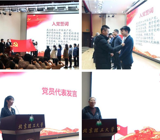 學院黨建組織員霍晶代表學院黨委宣讀《對2019年下半年預備黨員發展的審批意見》和預備黨員名單。新發展的102名預備黨員們面向黨旗莊嚴宣誓,并佩戴黨徽,在場所有老黨員共同重溫入黨誓詞。校黨建專家徐其敏和學生黨員郭云霞作為黨員代表進行發言。徐其敏結合自己多年的黨建工作經驗講到,無論新老黨員都要認真學習黨章黨規,學習系列講話,時刻用共產黨人的標準衡量和要求自己,永葆共產黨人的初心和使命。被推薦為北京市優秀畢業生的郭云霞同學分享其從一名入黨積極分子成長為黨員的心路歷程,并呼吁學生黨員們不但要在學習、學術科研和社會實踐等多方面起到帶頭作用,也要充分發揮黨員的模范先鋒和輻射帶動作用。
