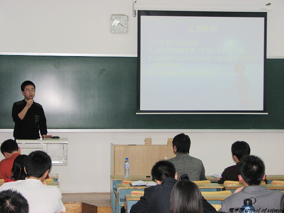 2006年11月15日(星期三)晚19:00,一年一度的理學院學生社團干部培訓如期舉行。一季季分團委的窗外青綠變成了澄黃,一代代理學院學生干部舊貌換新顏。當碩果累累的2005學年悄然走遠,輝煌映在昨日,2006學年是嶄新的白紙,充滿了想象但依然任重道遠。精誠團結、善行善思,理學院分團委周波、李明智、安泰、盧俊峰四位老師以他們個性的方式,以真切的體驗依次向理學院新一屆的學生社團干部講授了一堂內容充實、形式活潑的培訓課程,使大家受益匪淺。