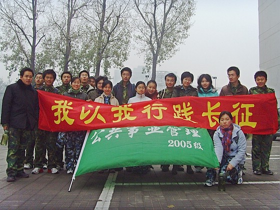 2005級公共事業(yè)管理班統(tǒng)一服裝,進行了徒步登山活動