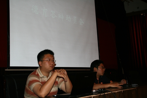 2009年5月25日,生命學院按照學校規定,認真落實2009屆本科畢業生德育答辯工作的相關要求,在七號樓報告廳舉行了2005級畢業生德育答辯動員大會,生命學院分團委書記王征老師,分團委副書記、2005級輔導員陳宇老師出席了大會。