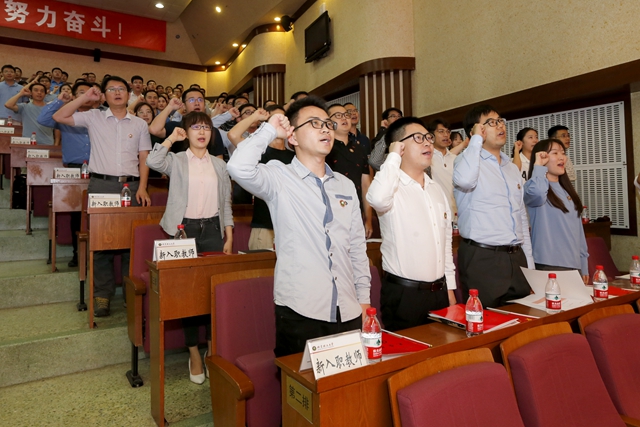 胡晗帶領全體新入職教師莊嚴宣誓:我志愿成為一名人民教師,忠誠黨的教育事業,遵守教育法律法規,履行教書育人職責,引領學生健康成長,傳承“延安根、軍工魂”紅色基因,秉承“德以明理、學以精工”校訓精神,做到有理想信念、有道德情操、有扎實學識、有仁愛之心,為教育發展、國家繁榮和民族振興努力奮斗!誓言鏗鏘,表達北理工新一代青年教師們投身教育事業、續寫北理輝煌的決心。