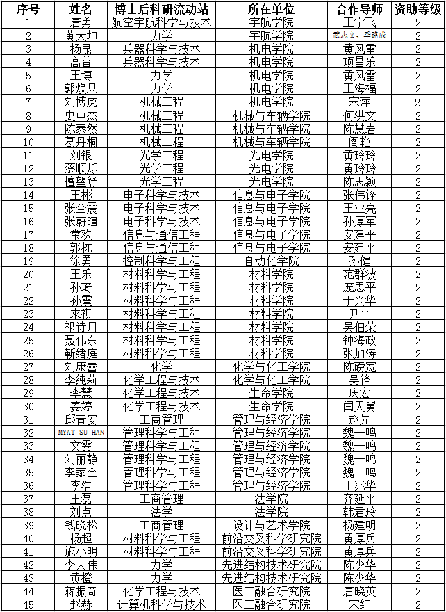 11月3日,中國博士后科學基金會公布《關于公布中國博士后科學基金第68批面上資助獲資助人員名單的通知》(中博基字〔2020〕16號),我校宇航學院左磊等52名博士后獲得中國博士后科學基金第68批面上資助,獲資助總人數較上批次增長73.3%,位列全國第10位;其中,獲得一等資助7人,位列全國第2位。