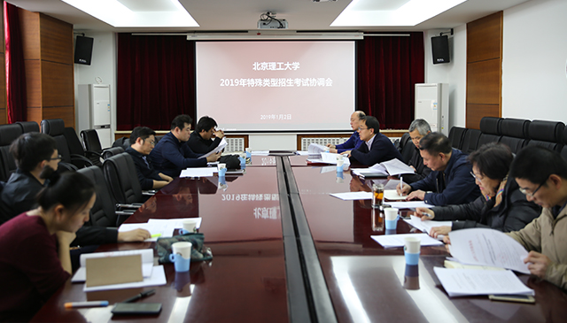 1月2日下午,北京理工大學2019年特殊類型招生考試協調會在2號樓211會議室召開。副校長王曉鋒出席會議。會議由招生辦公室主任...