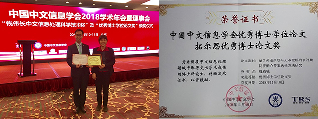 北理工語言智能與社會計算團(tuán)隊2018年斬獲兩項一級學(xué)會 “優(yōu)秀博士學(xué)位...