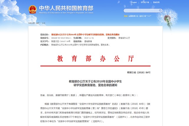 近日,教育部公布了2018年全國中小學生研學實踐教育基地、營地名單,北京理工大學光電創新教育實驗基地成功入選“全國中小學生研學...