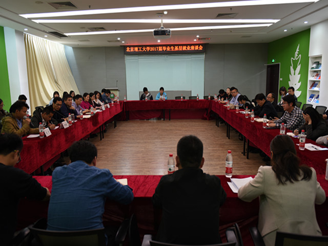 ??? 2017年4月26日上午,北理工在體育館唯實報告廳召開2017屆畢業生基層就業座談會。黨委組織部、學生工作處、招生就...