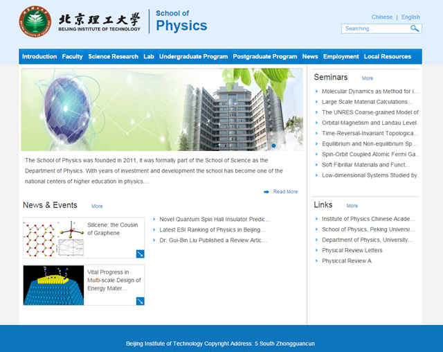 北京理工大學(xué)物理學(xué)院英文網(wǎng)站正式上線