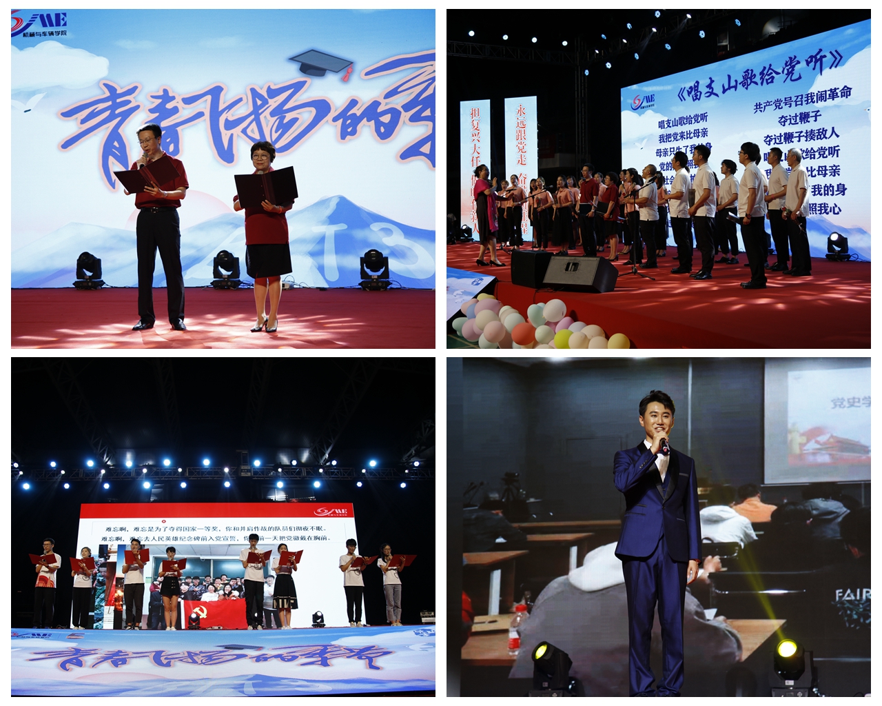 各支部黨員代表共同帶來(lái)的朗誦《青春的河》,在同志們飽含深情的訴說(shuō)中緩緩淌過你我腳畔;初心不忘青春志,熱血共筑中國(guó)夢(mèng),歌曲《不忘初心》表達(dá)了三院學(xué)子傳承紅色基因,永遠(yuǎn)跟黨走的堅(jiān)定信念;在馮慧華和薛慶的深情朗誦后,由機(jī)械學(xué)院教師組成的“魅力機(jī)車合唱團(tuán)”,在校學(xué)生交響樂團(tuán)合唱團(tuán)藝術(shù)總監(jiān)賀春華的指揮下,共同演唱《唱支山歌給黨聽》,用歌聲傳遞了教師們對(duì)黨的忠誠(chéng)與熱愛,和對(duì)偉大的中國(guó)共產(chǎn)黨100周年華誕的真摯祝福;老師們又以一曲《再見》,將對(duì)學(xué)生們的送別娓娓道來(lái),為即將遠(yuǎn)航的畢業(yè)生們送出最真誠(chéng)的祝福。
