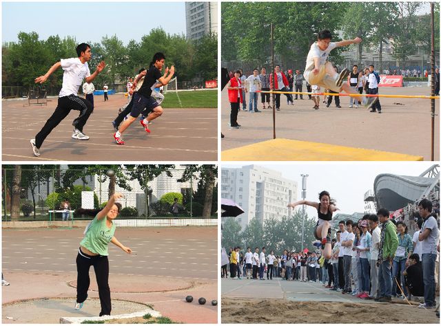 本屆運動會分為田賽、徑賽、趣味賽三大項目。百米賽場上,運動健兒們像風一樣馳騁在體育賽道上;跳高比賽中,運動員身形一躍便輕松過竿,引得觀眾一片驚嘆;趣味競賽中,同學們以班級為單位,開展了跳大繩、踢毽子、集體投籃等多個趣味項目,在比賽中增進友誼與集體凝聚力,在大家辛苦的學習之余為大家增添了一絲樂趣。同學們每個人都融入其中,信心滿滿,為班集體榮譽而拼搏。