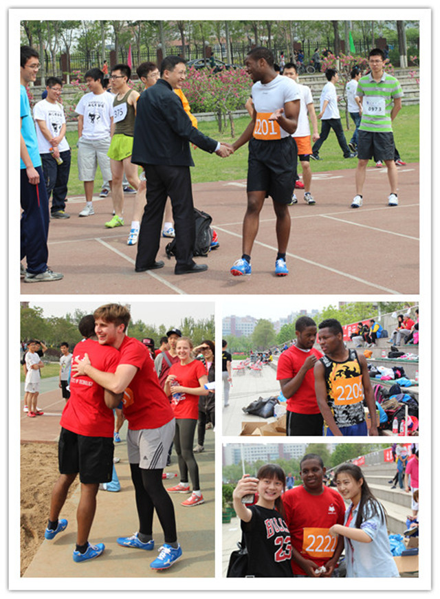 賽場上,同學們互相加油、送水、攙扶,就連我們加油的話語也是五花八門、各種語言混雜。每一個走下賽場的同學都會受到朋友們的熱情擁抱。”Give me five!” ,擊掌慶祝。很多中國同學也會跑過來和自己的外國同學說:“你跑的真快,祝賀你。”這種互動,正是我們要參加這次運動會的初衷之一:我們希望我們的外國留學生能夠更進一步融入學校的氛圍,進入到中國學生的生活中,從而能夠讓他們廣交朋友、敞開心扉,在中國生活的更舒暢。