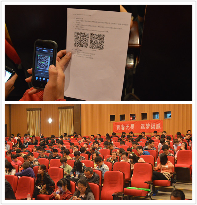 大賽進入最激動人心的現場評委投票環節,在場的同學需要掃描傳單上的二維碼下載軟件學院同學們自主設計研發的投票系統,以軟件學院辦公平臺的身份進行登錄,每人有四票,需要投給四個不同的團支部。