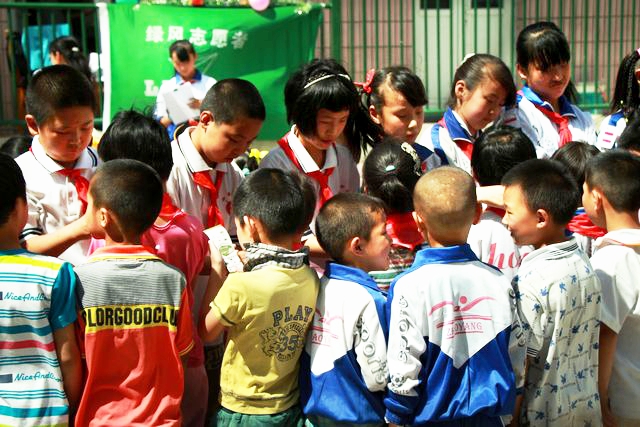 下午四點,伴隨著《和你一起》的歌聲和優美的舞蹈,主持人宣布聯歡會順利結束。綠風志愿者們給孩子們分發了事先準備的小禮物——作業本和糖果以及書寫著綠風志愿者深深祝福的書簽。一學期的支教經歷讓大家和孩子們產生了深厚的感情,臨走時大哥哥大姐姐和孩子們依依不舍的揮別。