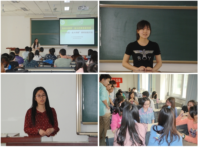 2014年5月15日星期四中午,人文學院團委在理教404順利開展“學長學姐說——奮斗的青春最美麗”交流會。交流會主要分為兩部分。第一部分是由受邀請的學院優秀榜樣作發言與經驗交流;第二部分是受邀團員青年與到場的11級、12級及13級團員青年進行分組自由交流。