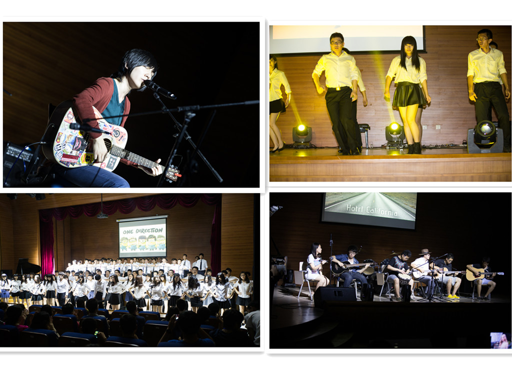 由課上同學們演唱的邁克爾杰克遜在1985年為非洲災民創作的《We are the world》和由金煒航帶來的舞蹈《Dangerous》帶大家一起重溫了經典;豐小藝、佳凱迪、劉學彬的舞蹈《Hi Night》用動感的節奏和曼妙的舞姿感染了在場的每一個觀眾;而由竇文韜等同學深情演唱的《波西米亞狂曲》和由符之煥、韓欣欣動感而激情演繹的《We will rock you》將皇后樂隊作品的經典演繹得淋漓盡致:由課上五位女孩組成的some girls為大家帶來的一組精彩的名曲串燒給大家帶來別樣的視聽感受;深秋冠軍韓欣欣一首《Don’t know why 》的傾情演唱感動全場。