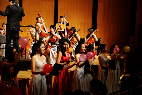 成績背后是師生辛苦的付出,演出中因腳傷而拄拐上臺演出的2012級管理學院本科生張博涵給大家留下了深刻印象,而這只是藝術團師生們辛苦付出、甘于奉獻的縮影。在他們汗水的澆灌下,交響樂團、學生合唱團已經不僅是校內最高水平的學生藝術團體,并且也成為校園內具有代表性的文化符號,充分展示學校素質教育特別是公共藝術教育的成果。