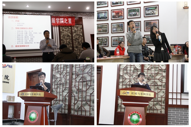機械與車輛學院“學院之星”評選活動自2002年起辦,每年年終推選出在各方面表現突出的青年學生。去年開始,該活動以“機械星工坊”的品牌來開展,一方面發掘表現突出的個人,作為“星”并推送至青春榜樣庫;另一方面,將該年度培育“星”最多的集體授予“機械星工坊”榮譽稱號,促進基層團支部建設。2014年12月29日,本年度“機械星工坊——學院之星”評選活動決賽在車輛實驗樓報告廳舉辦,通過選手展示、現場投票等環節,本年度的各類“星”及“機械星工坊”得以產生。
